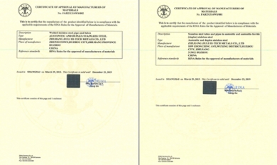 近日,公司通過RINA意大利船級(jí)社認(rèn)證。這是繼獲得CCS中國船籍社、DNV-GL挪威船級(jí)社、德國勞氏船級(jí)社、BV法國船級(jí)社、ABS美國船級(jí)社、LR英國勞氏船級(jí)社等主要船級(jí)社認(rèn)證之后,